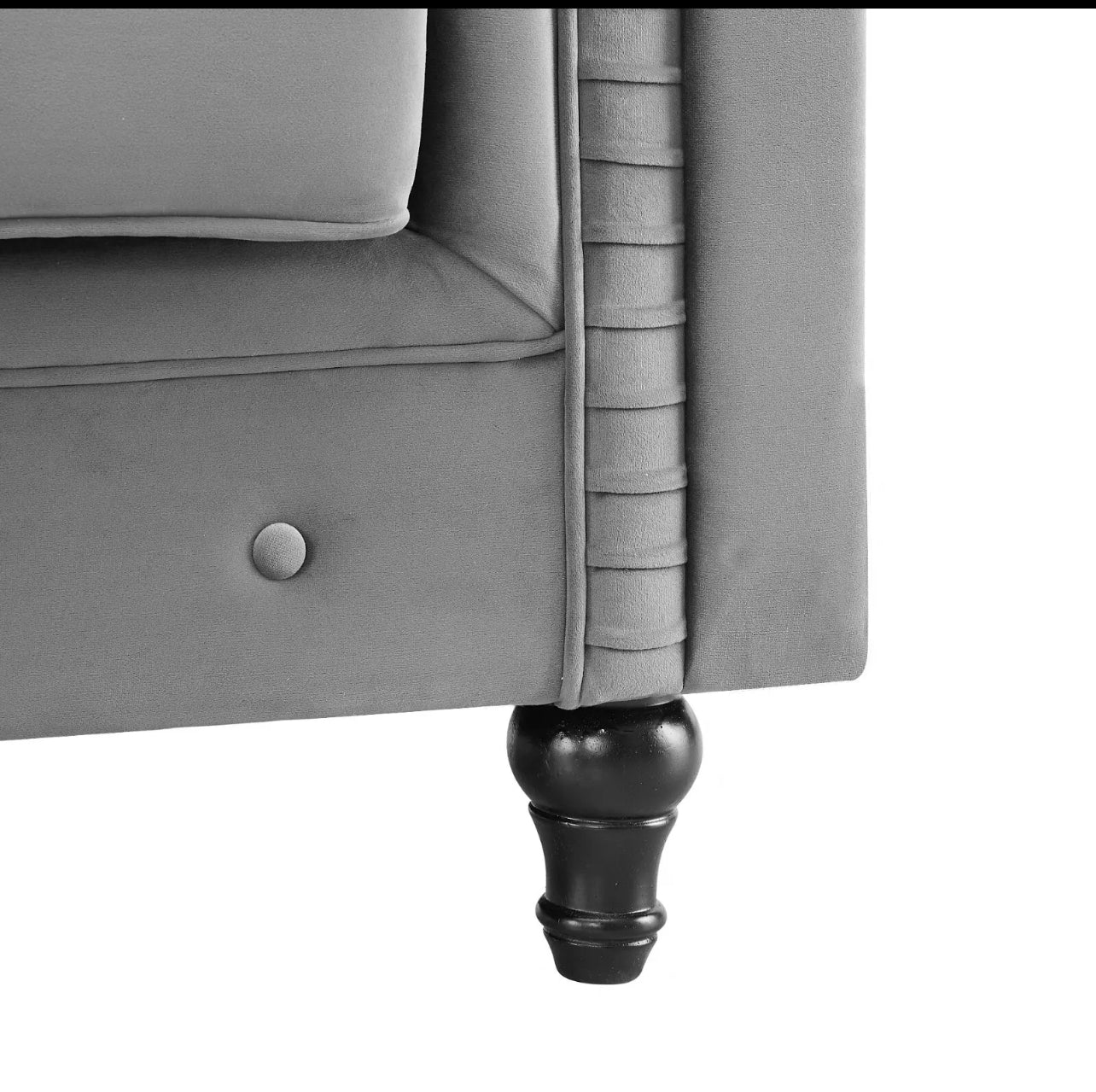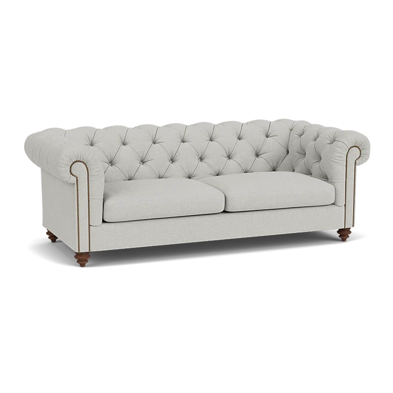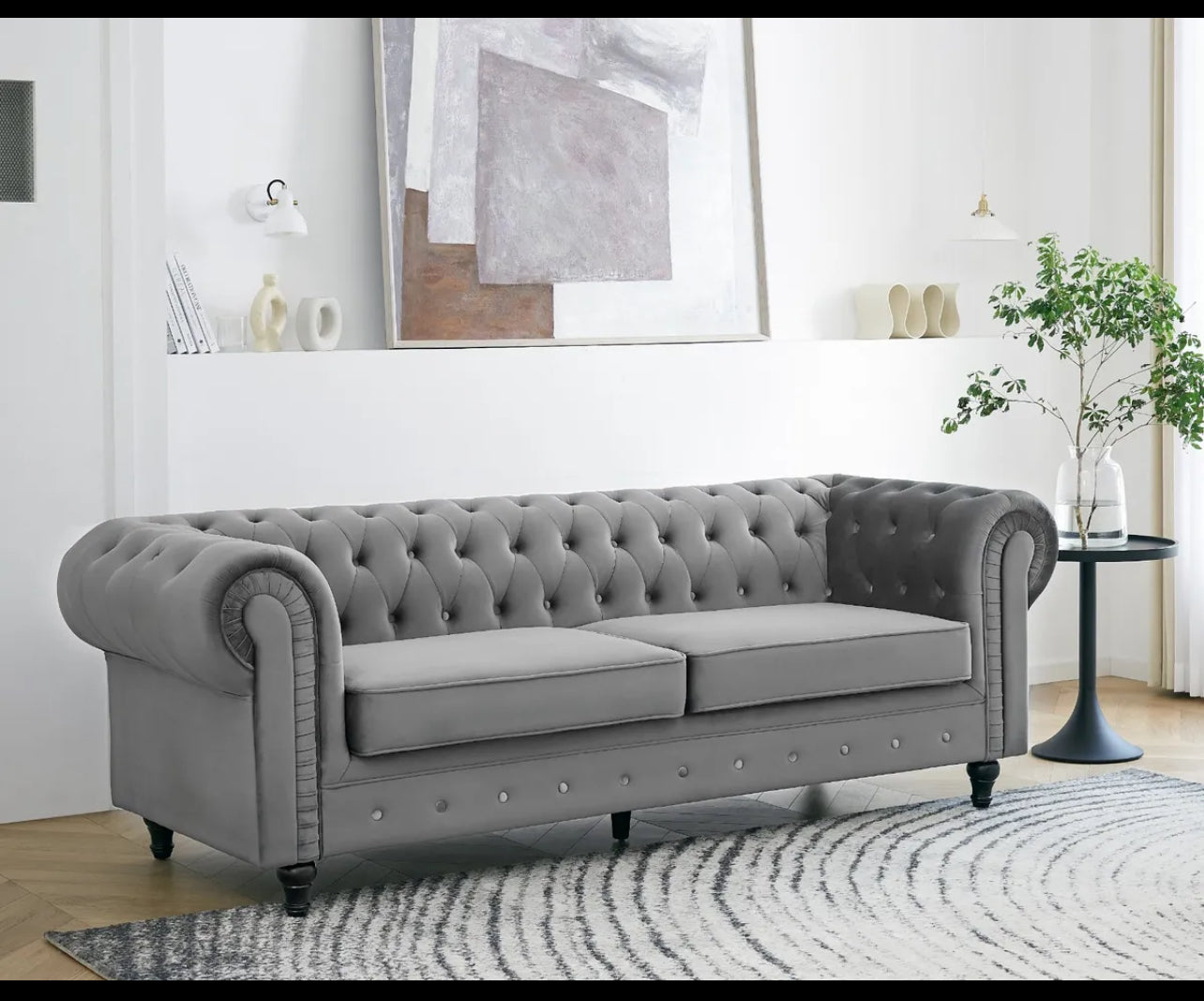 The Chesterfield Pleat sofa range combines elegant scroll armrests and pleat details with dark wooden legs for a luxurious and stylish look. Handcrafted in the UK with high construction standards, this sofa comes in two different sizes - a comfortable two seater and a spacious three seater - and is available in stunning shades of grey, green, or midnight blue velvet. Please keep in mind that velvet fabric may appear darker or lighter due to nap and pile direction shading, and variations in color intensity and brightness may occur. Regular vacuuming is recommended to maintain the appearance of the sofa. Before placing your order, please ensure that the delivery address is correct, as changes cannot be made once the order is submitted.