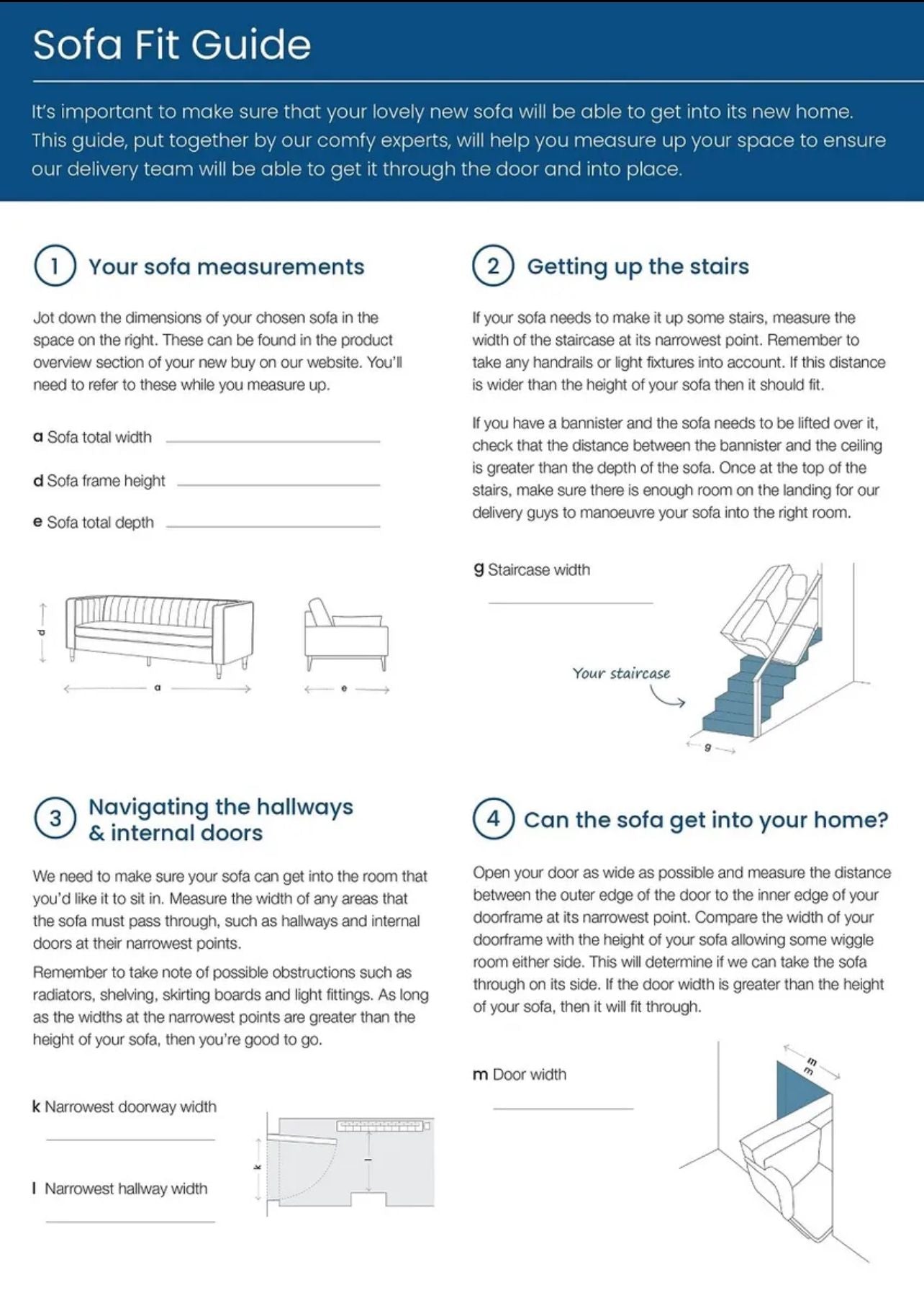 The 2-seater sofa measures W183cm x D90cm x H77cm with a seat width of 120cm and a maximum weight capacity of 200Kg, while the 3-seater sofa measures W225cm x D90cm x H77cm .