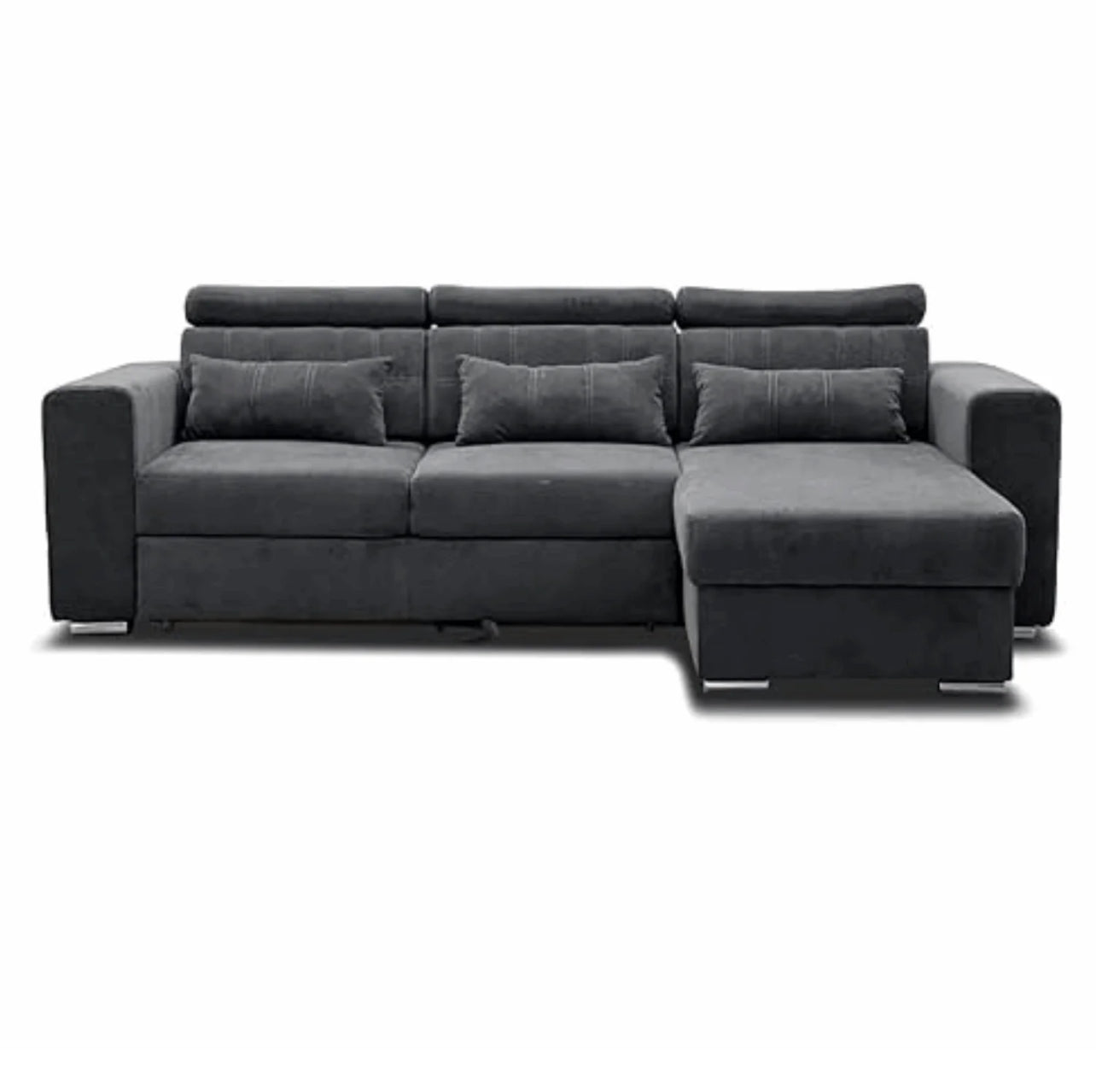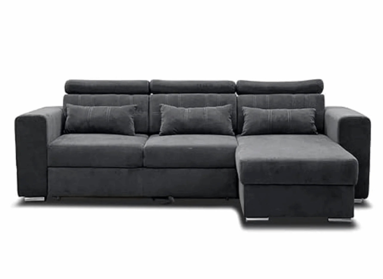 The Luca L sofa bed combines comfort and style with its premium fabric and solid hardwood frame. Easily convert it into a bed by pulling out the element under the seat and raising it to seat height. Featuring an adjustable headrest, storage for bedding, and a universal design, this sofa bed is a versatile addition to any room. Dimensions: 250 cm width, 97 cm height, 160 cm depth, with a sleeping area of 134 x 205 cm.