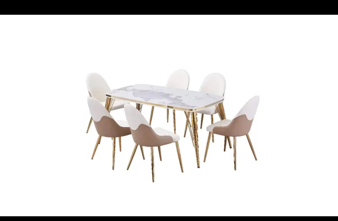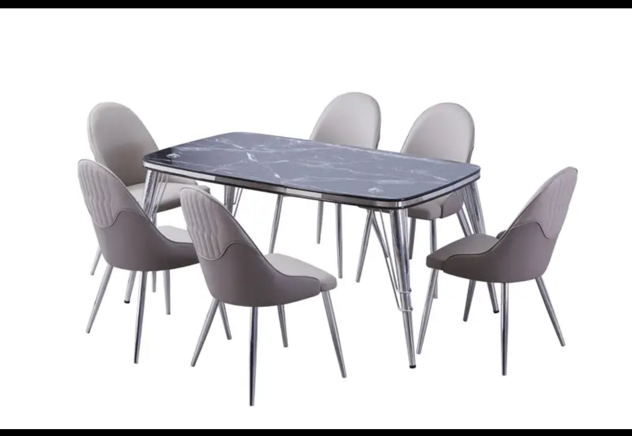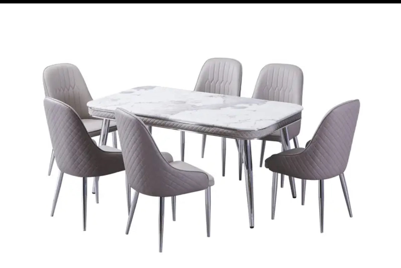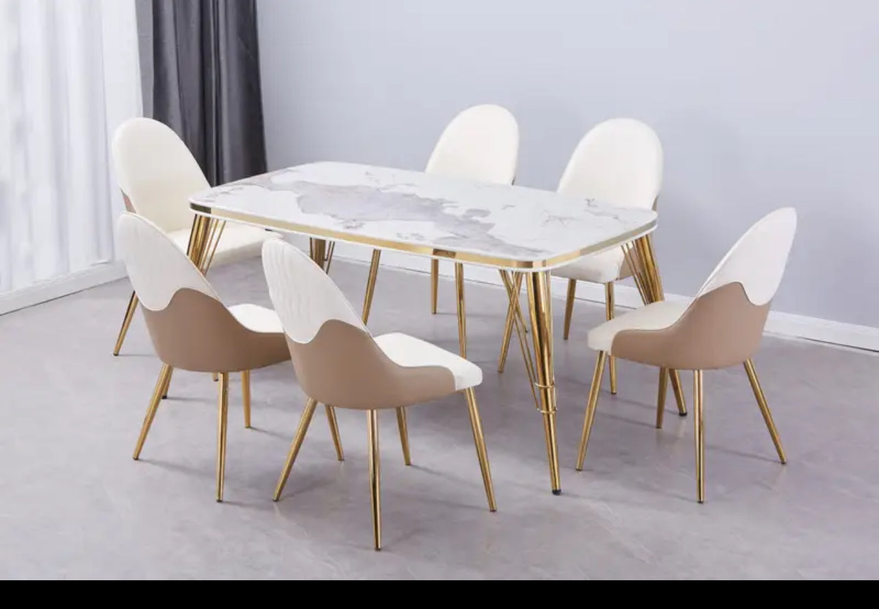Marble dining table with chairs , chairs made with plush valvet material also available in leather too . dimensions 70x 140