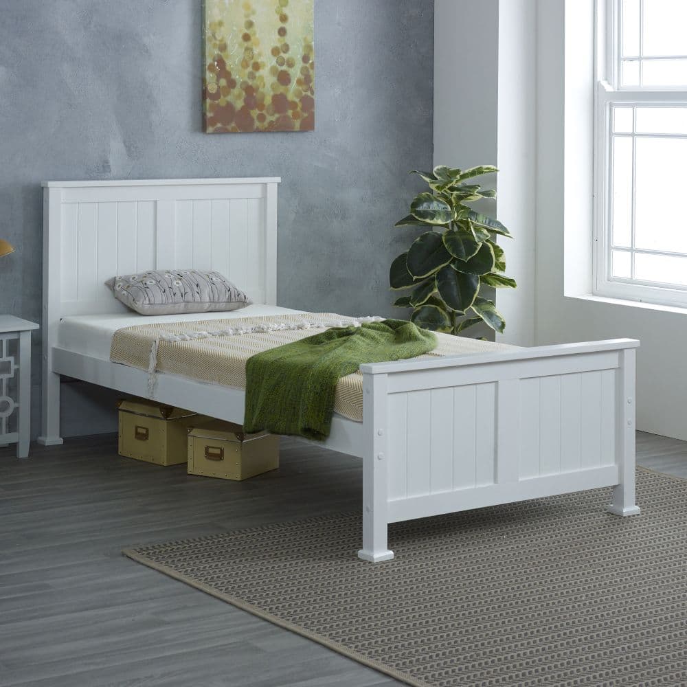 The Madrid White Wooden Bed is ideal for a modern home, a traditional interior, or even a cosy cottage. It's a versatile bed with a bright white finish that is an attractive colour that brings freshness and light to your home. This bed is finished to a high standard, allowing comfort and support for you and your mattress.