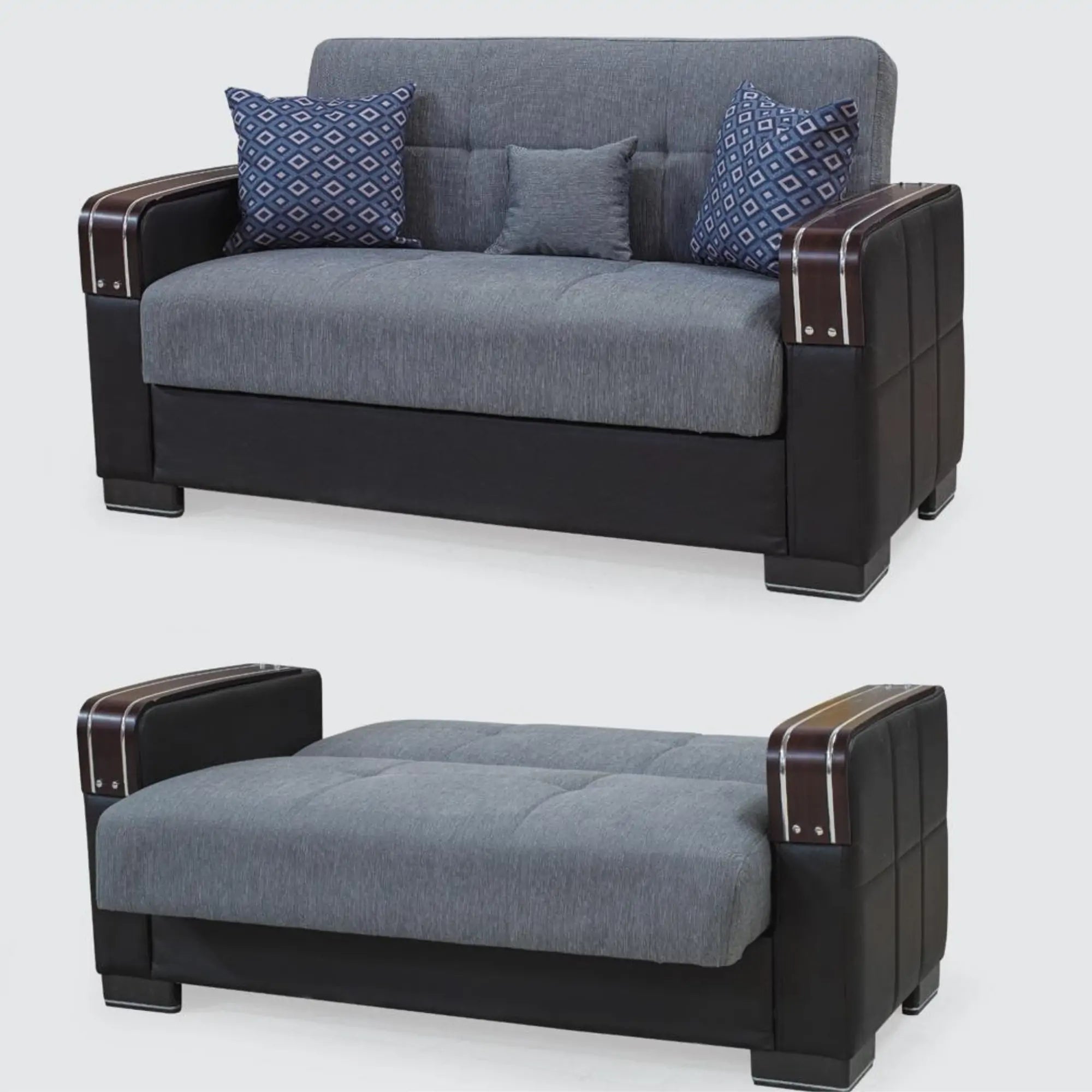 Malta Sofa Bed has a successful combination of different details like woven leatherette sides, all-natural wooden armrests and chrome fee set the atmospheric dial for comfort and heightens the overall modern appearance. Twisting and bending resistant reinforced frame construction. Rust and corrosion resistant galvanized mechanism and fitting parts.