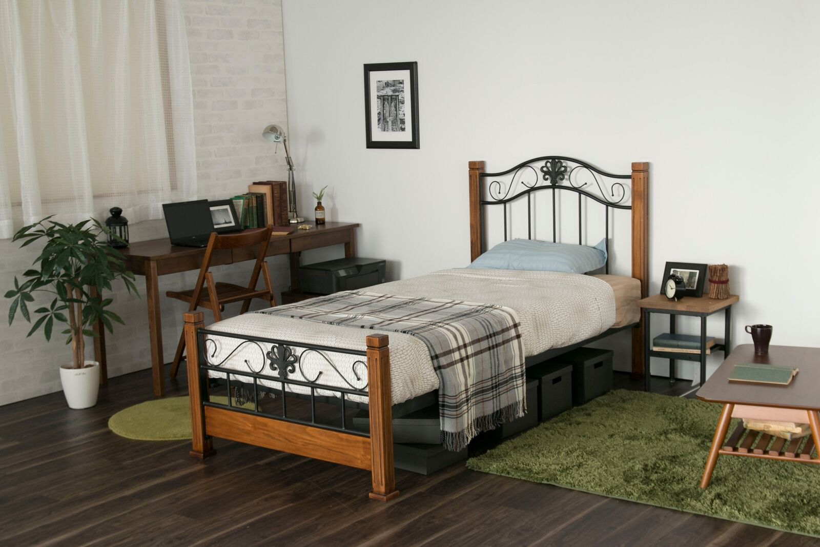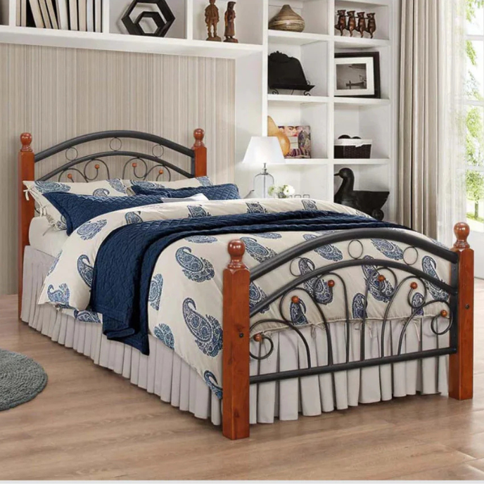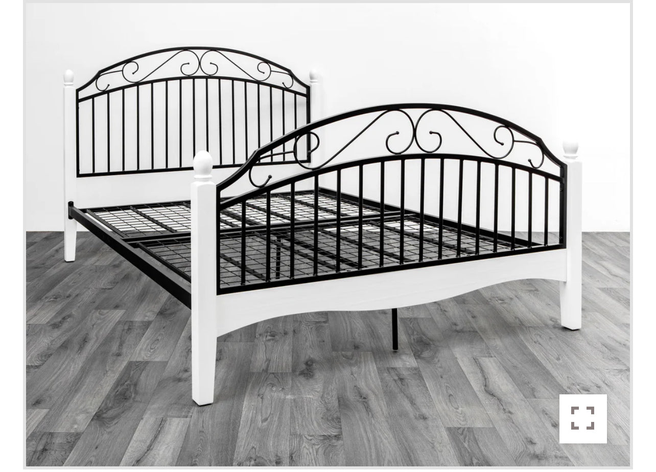 The Oak Black Bed Frame features a blend of light beech wood and sleek black metal, offering a modern design with curved head and foot bars. Available in single and double sizes, this frame suits a variety of contemporary bedroom styles. The combination of natural wood tones and black metal struts creates a distinctive, stylish appearance. Colors available:
